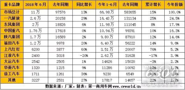 今年上半年,重卡市場累計銷售66.98萬輛,比去年同期的58.37萬輛實現(xiàn)增長15%。