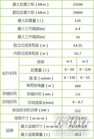 中聯(lián)重科LH3350-120是目前我國噸位最大的動臂塔機,也是目前全球噸位最大的內(nèi)爬式動臂塔機。其最大起重力矩為33500千牛米,最大吊重能力為120噸,相當于同時吊起17頭成年大象。