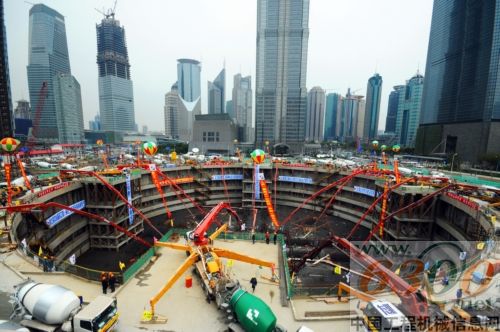 上海世博會開幕在即。3月28日,上海陸家嘴,一棟改寫中國建筑高度的大廈圓滿完成6萬方混凝土底板澆注,即將破土而出。4年后,上海中心,這幢設計高度為632米的大樓將輕松奪走492米上海環(huán)球金融中心“中國第一高樓”的桂冠。