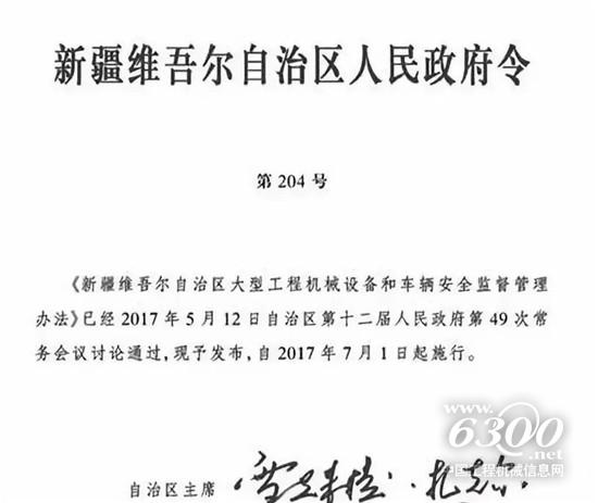 新疆工程機械監(jiān)管令