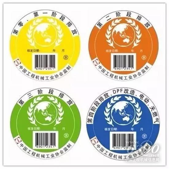 按照有關(guān)要求,中國(guó)工程機(jī)械工業(yè)協(xié)會(huì)統(tǒng)一制定非道路移動(dòng)工程機(jī)械標(biāo)識(shí):“第零、第一階段排放”標(biāo)識(shí)為黃色;“第二階段排放”標(biāo)識(shí)為橙色;“第三階段排放”標(biāo)識(shí)為綠色;“第四階段排放、DPF改造、電動(dòng)、天燃?xì)狻钡臉?biāo)識(shí)為藍(lán)色。