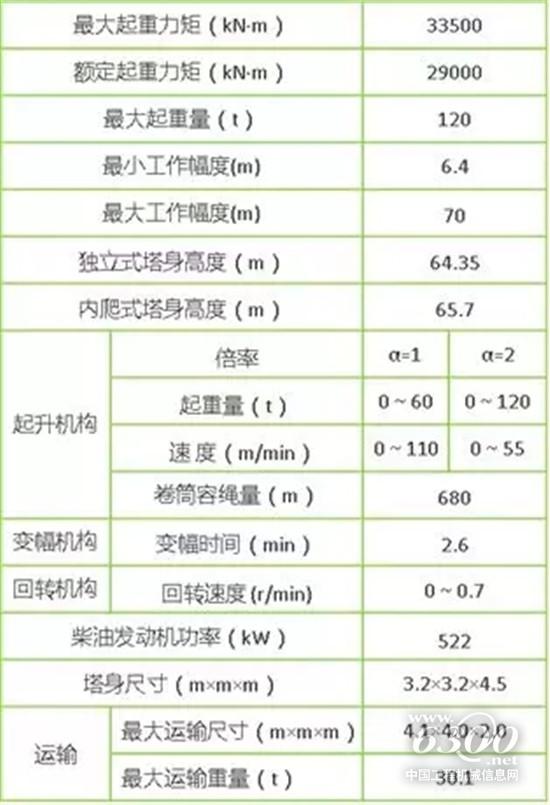 中聯(lián)重科LH3350-120是目前我國噸位最大的動臂塔機,也是目前全球噸位最大的內(nèi)爬式動臂塔機。其最大起重力矩為33500千牛米,最大吊重能力為120噸,相當(dāng)于同時吊起17頭成年大象。