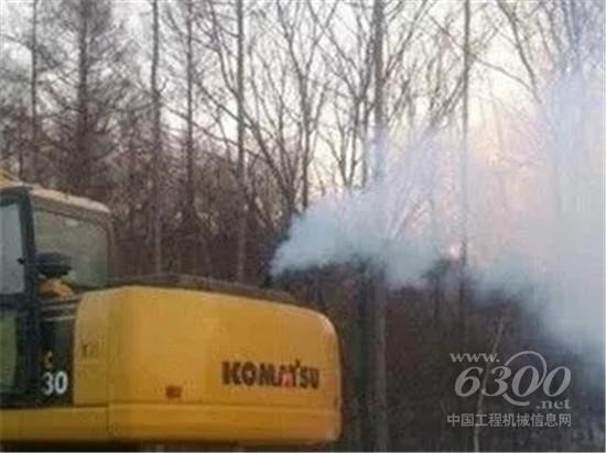 挖機(jī)在施工時(shí)冒白煙,在冬季尤為明顯。這是因?yàn)椴裼蜋C(jī)在剛起動(dòng)時(shí)或冷機(jī)狀態(tài)時(shí)氣缸內(nèi)溫度低,油氣蒸發(fā)而形成。但如果是在熱機(jī)時(shí),排氣管仍在冒白煙,那么就可以初步判斷柴油機(jī)出現(xiàn)故障。