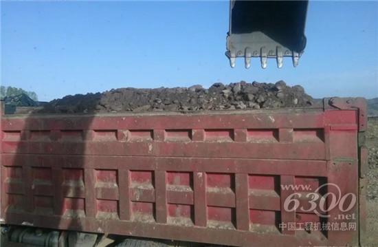 調(diào)整好挖掘機(jī)與自卸車的位置之后就可以輕松裝車了,裝車時(shí)無論從前往后裝還是從后往前裝都可以,只要一斗接一斗掌握好節(jié)奏即可。