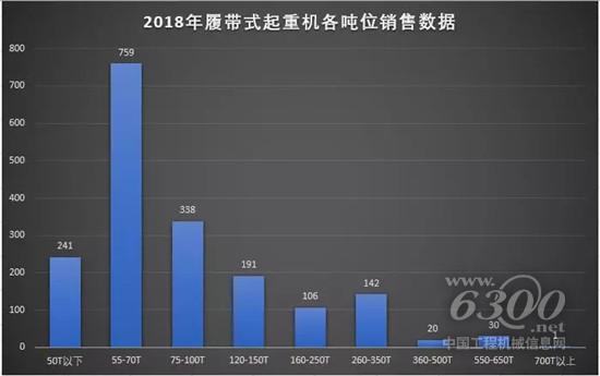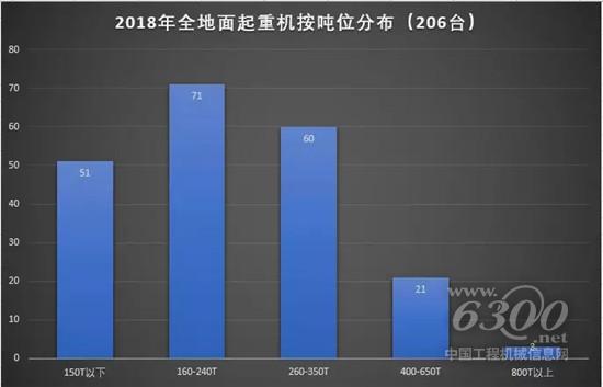 2018年全地面起重機銷售主要在350T以下的車型,這種車型一般局限于當?shù)刈赓U使用,原有車型大部分為60米主臂以下,這幾年經(jīng)過廠家升級改造,新款車型主臂長度均在70米以上,兩者在性能差距上越來越明顯。