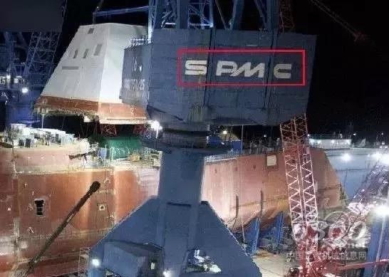值得注意的是,美國公開新一代朱姆沃爾特級(jí)驅(qū)逐艦的建造情況時(shí),吊裝戰(zhàn)艦上層建筑的吊機(jī)上也有SPMC的字樣。SPMC是原上海港機(jī)股份有限公司的英文名稱,目前已被振華港機(jī)收購。