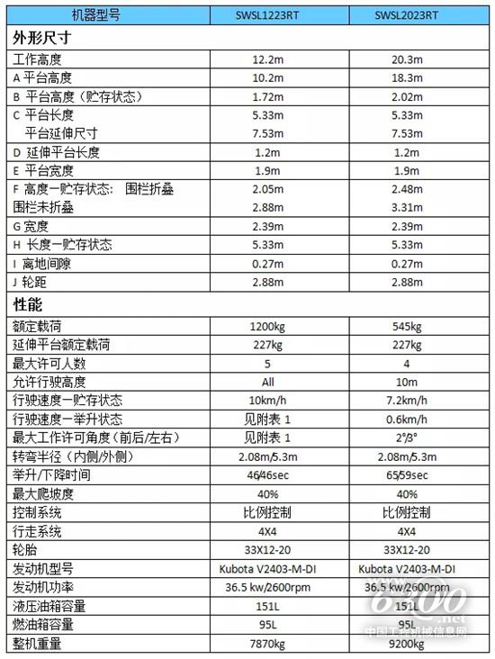 本次首發(fā)的越野剪叉式高空作業(yè)平臺是山河智能最新研制的SWSL2023RT越野剪叉式高空作業(yè)平臺。采用液壓四輪驅(qū)動,具有結(jié)構(gòu)簡單、運行平穩(wěn)、操作簡便靈活、承載能力大、維修保養(yǎng)便捷、安全保護功能齊全等特點,優(yōu)良的越野性能可適用于各種復(fù)雜路面。只需一人在工作平臺上便可完成前后、升降、轉(zhuǎn)向和調(diào)平等動作,連續(xù)作業(yè)性強,節(jié)能高效。該設(shè)備具有故障診斷系統(tǒng)、自動剎車系統(tǒng)、油管防爆系統(tǒng)、傾斜保護系統(tǒng)、超載報警、動作蜂鳴、喇叭、比例控制、四輪驅(qū)動、后橋浮動、后橋鎖止、交流電接至平臺、安全檢修支架、調(diào)平支腿、折疊式護欄、雙向延伸平臺等功能。最大載重545kg,最大行駛速度7.2km/h,最大工作高度20m,最大爬坡能力40%,前后工作最大允許角度2°,左右工作最大允許角度3°。