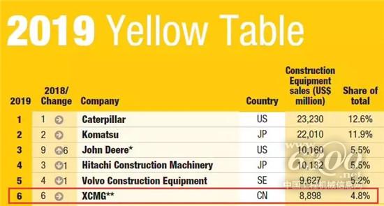 根據(jù)KHL披露的數(shù)據(jù)顯示,2018年中國工程機(jī)械行業(yè)銷售額同比增長37%,銷售臺(tái)量數(shù)為34萬臺(tái)。這是中國市場自2012年以來設(shè)備銷量最高的年份,中國再次成為全球最大的建筑設(shè)備市場,這條脈絡(luò)暗合中國裝備制造產(chǎn)業(yè)的發(fā)展。伴隨著增長,隨之而來的則是中國企業(yè)在Yellow Table排行榜上市場份額的提升。作為持續(xù)領(lǐng)跑中國工程機(jī)械行業(yè)的徐工集團(tuán),保持了全球第六的高位,以“強(qiáng)者恒強(qiáng)”的逆勢表現(xiàn),始終保持著穩(wěn)健的高質(zhì)量發(fā)展步伐。