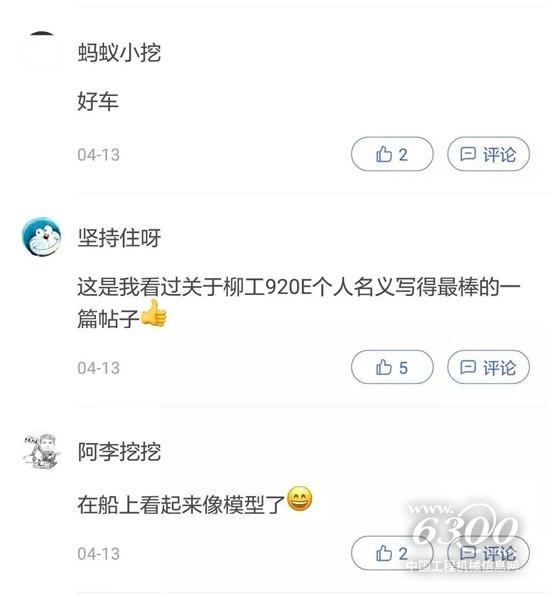 從到柳工公司,到下定金,兩三個(gè)小時(shí)搞定,就談價(jià)格。質(zhì)量品牌的介紹各各方面不用介紹,因?yàn)槲揖烷_(kāi)的它,相對(duì)比較了解。三月七號(hào)提的車(chē),到今天干了200小時(shí),其他毛病沒(méi)啥,就是駕駛室異響,空調(diào)臭味比較嚴(yán)重。速度挺快,勁頭只能說(shuō)一般。油耗動(dòng)力模式4格油門(mén),一小時(shí)8升。注意,用動(dòng)力模式,4格油門(mén)速度已經(jīng)非常非??炝?,滿(mǎn)載十一個(gè)油。用e模式,油門(mén)加到八個(gè),我感覺(jué)還不如用動(dòng)力模式四個(gè)油門(mén),動(dòng)作,發(fā)動(dòng)機(jī)聲音,液壓泵聲音都要好太多了。