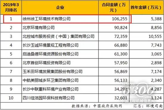 據(jù)環(huán)境司南參照中國政府采購網(wǎng)采購公告的快訊報道,2019年3月份,受到固定資產(chǎn)投資、政策更新、城市化進(jìn)程加快等利好的提振,國內(nèi)環(huán)衛(wèi)運(yùn)營市場中標(biāo)數(shù)量同比增長20.77%。徐工環(huán)境產(chǎn)業(yè)拔得頭籌,先后中標(biāo)閩清縣城鄉(xiāng)環(huán)衛(wèi)一體化PPP項(xiàng)目(鄉(xiāng)鎮(zhèn)標(biāo)段)和鶴崗市東山區(qū)環(huán)衛(wèi)服務(wù)項(xiàng)目,以10.63億元的合同業(yè)績登上當(dāng)月冠軍寶座。