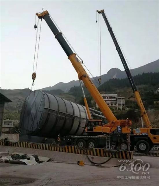 重慶巫山縣段高鐵基建建設(shè)現(xiàn)場(chǎng),XCT90 和QY70K-1吊起25噸重的“大胖子”