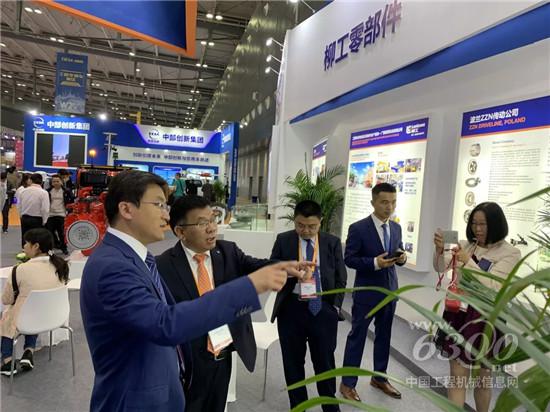 山推總經(jīng)理張民參觀柳工零部件展區(qū)