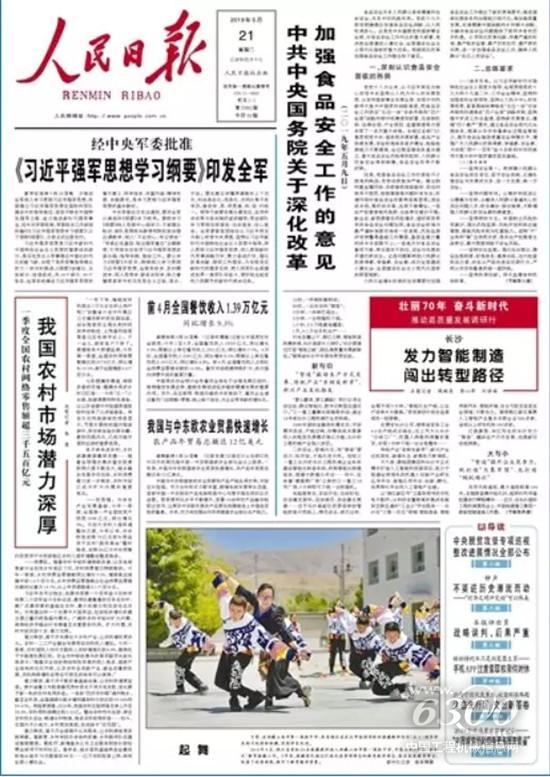 5月21日,《人民日報(bào)》頭版聚焦長沙智能制造,特別提到了三一通過智能化轉(zhuǎn)型升級,迸發(fā)新的活力。