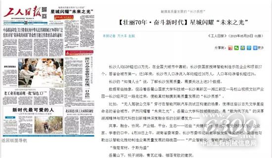 5月20日,《工人日報(bào)》頭版刊發(fā)的《星城閃耀“未來之光”》文章稱,通過智能制造,工程機(jī)械這類傳統(tǒng)制造業(yè)“老樹發(fā)新芽”,重回歷史最好水平。