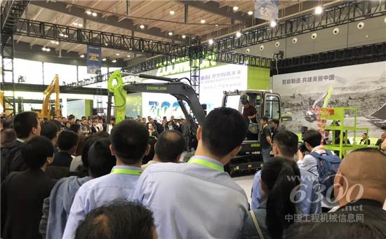 長(zhǎng)沙展上,客戶觀摩中聯(lián)重科ZE60E-10挖掘機(jī)投籃表演