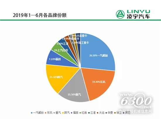 重汽與陜汽的競爭中你來我往,非常激烈。6月份的銷量和市場份額都非常接近。重汽6月份總計(jì)銷量1.5萬輛,今年半年累計(jì)銷售10.12萬輛,所占市場份額為15.5%。
