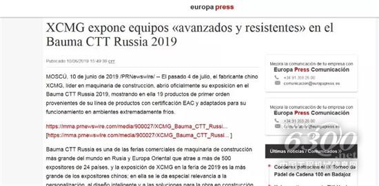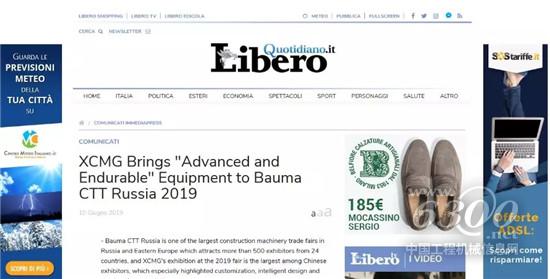 《參考消息》的這篇新聞報道,對徐工集團在2019俄羅斯CTT展取得的成功,以及徐工在俄羅斯的發(fā)展情況等進行了詳細描述,并對徐工在促進中俄友誼方面所做出的努力給予了充分肯定。隨即英國新聞門戶網(wǎng)站One news page、意大利知名報紙Libero Quotidiano、西班牙國際新聞通訊社Europa Press等44個國家400多個國際知名媒體也紛紛對徐工在俄參展的情況進行了大篇幅宣傳報道。