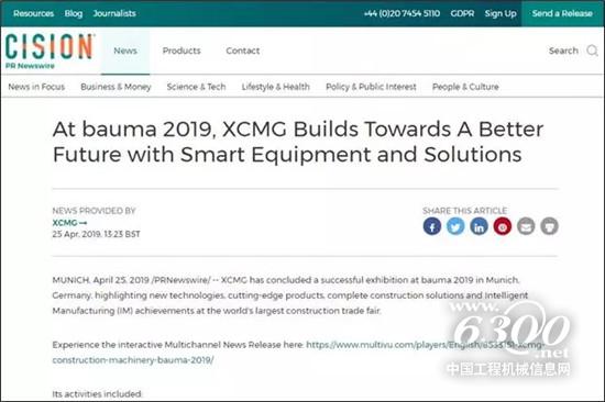 德國寶馬展,徐工受到德國電視二臺、英國門戶網(wǎng)站PR Newswire UK等近百家媒體的關(guān)注