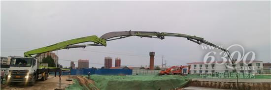 中聯(lián)重科3橋49米泵車在駐馬店某重點工程施工