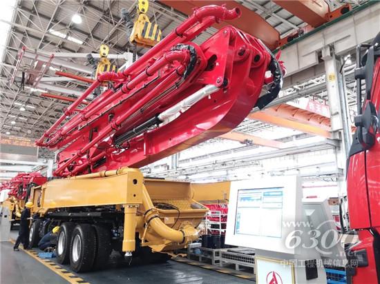 三一的泵車是該企業(yè)的拳頭產品,圖為正在組裝的泵車。蔣云俠 攝