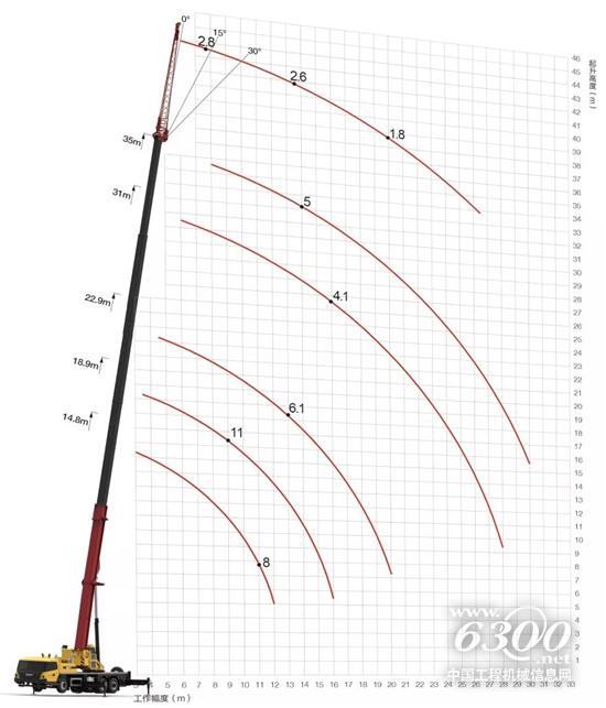 23m臂長(zhǎng),13m幅度,額載6.1t