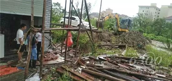 嘉興洪合橫徑橋社區(qū)周安橋自建房區(qū)塊居民房屋被水淹沒(méi),徐工挖機(jī)清理房屋周邊圍土,泄水排澇