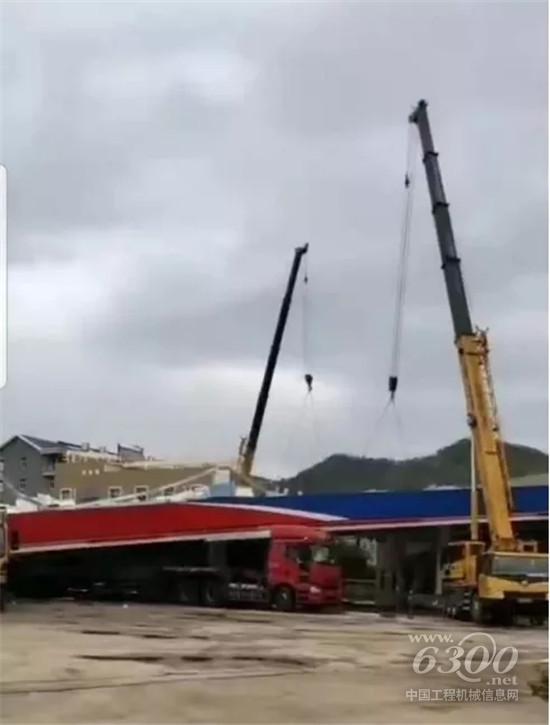 11時(shí)12分臺(tái)州市冷秋平的三臺(tái)徐工吊車施救吹倒的加油站