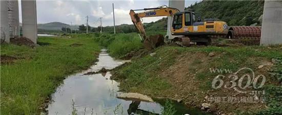 煙臺(tái)海陽(yáng)昌水河大橋,徐工挖機(jī)河道清淤