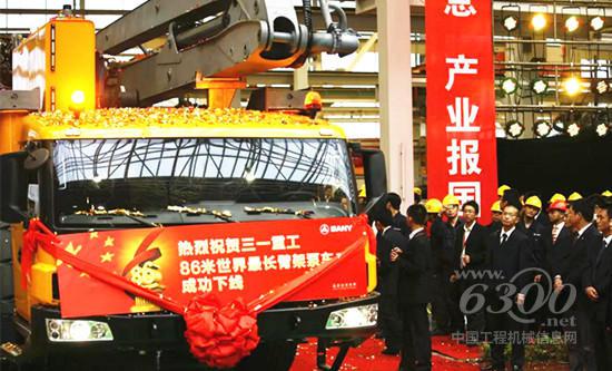 時(shí)隔兩年,在2009年年底,三一又一次刷新了世界最長臂架泵車紀(jì)錄,三一第一臺(tái)72米臂架泵車下線。2008年的時(shí)候,普茨邁斯特推出了全球首臺(tái)70米臂架泵車,打破了三一在2007年創(chuàng)造的63米臂架泵車紀(jì)錄。不過,三一似乎也沒有落下,與普茨邁斯特時(shí)隔一年,又在其基礎(chǔ)上將臂架長度提高了2米,刷新了新紀(jì)錄。