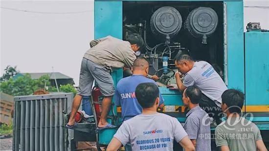 經(jīng)過(guò)一番交流了解設(shè)備情況后,服務(wù)團(tuán)隊(duì)對(duì)SWRC170多功能全回轉(zhuǎn)鉆機(jī)進(jìn)行全面的故障排查。據(jù)了解,這臺(tái)SWRC170是山河智能設(shè)計(jì)生產(chǎn)的第二臺(tái)全回轉(zhuǎn)鉆機(jī),進(jìn)入越南之后已經(jīng)使用九百多小時(shí),因?yàn)楸pB(yǎng)得宜現(xiàn)在依然運(yùn)行順暢良好,客戶對(duì)設(shè)備的性能和使用情況非常滿意。