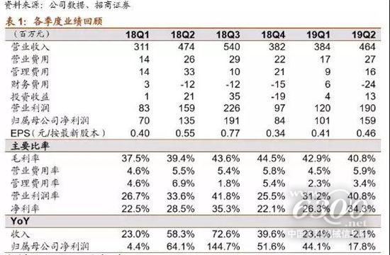 凈利潤增速高于收入主要有兩方面:一是凈利率提升至30.7%;二是非經(jīng)常性損益方面,雖然投資收益大幅下降,同比減少1400萬,但政府補助同比增加2000萬,對凈利潤提升有所貢獻。