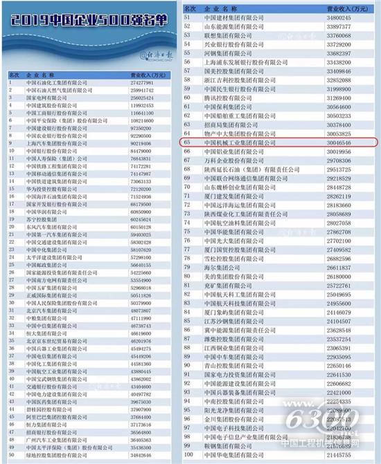 國機(jī)集團(tuán)位列2019中國企業(yè)500強(qiáng)榜單第65位。