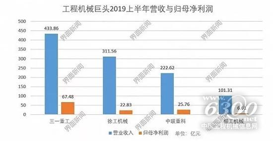工程機(jī)械巨頭2019上半年?duì)I收與歸母凈利潤(rùn)。數(shù)據(jù)來(lái)源:各公司半年報(bào)