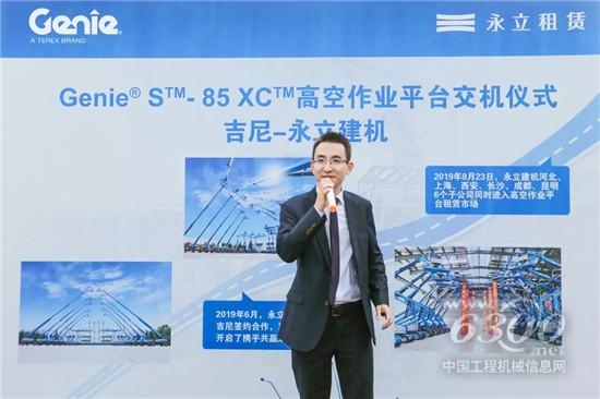 永立建機(jī)總經(jīng)理助理蔣曉宇先生在儀式上發(fā)言:“永立建機(jī)(中國(guó))有限公司為原裝日立挖掘機(jī)及礦用自卸卡車的中國(guó)總代理,在工程機(jī)械銷售領(lǐng)域已有20多年的歷史。2019年隨著公司發(fā)展的需要,決定增加設(shè)備租賃項(xiàng)目,先期以高空作業(yè)平臺(tái)進(jìn)入市場(chǎng),今后計(jì)劃增加挖掘機(jī)等其它租賃設(shè)備,成為綜合性的設(shè)備租賃公司. 吉尼是國(guó)際知名的高空作業(yè)車品牌,可靠的產(chǎn)品質(zhì)量、及時(shí)快速的服務(wù)解決方案以及共同的價(jià)值觀,成就了雙方的合作。此次永立建機(jī)在經(jīng)過(guò)慎重的比較選擇后,一次性訂購(gòu)了吉尼500臺(tái)臂車。隨著業(yè)務(wù)的拓展,網(wǎng)點(diǎn)的增建,我們今后將持續(xù)增加吉尼設(shè)備的投入?!?/p>