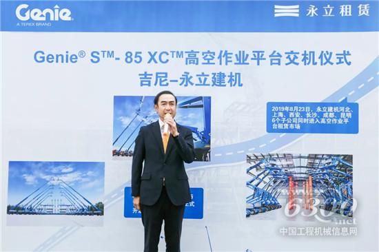 交機(jī)儀式在雙方公司領(lǐng)導(dǎo)的祝詞中拉開序幕。特雷克斯高空作業(yè)平臺(tái)事業(yè)部大中華區(qū)區(qū)域總監(jiān)齊斌先生在致詞中表示:“ 我們非常高興能與永立建機(jī)建立長(zhǎng)期發(fā)展的戰(zhàn)略合作伙伴關(guān)系。永立在工程機(jī)械行業(yè)有著二十多年的經(jīng)驗(yàn),無(wú)論從戰(zhàn)略眼觀、格局還是經(jīng)營(yíng)風(fēng)格,吉尼都非常認(rèn)同。作為最早進(jìn)入中國(guó)市場(chǎng)的高空作業(yè)制造商品牌之一,吉尼深刻理解中國(guó)客戶的需求,有著成熟和完整的租賃商扶持和培育體系,也有充分的資源和能力為合作伙伴創(chuàng)造價(jià)值。如今的中國(guó)高空作業(yè)平臺(tái)市場(chǎng)已經(jīng)到了一個(gè)全面快速發(fā)展的轉(zhuǎn)折點(diǎn)時(shí)代, 它要求制造商和租賃商以更穩(wěn)健的步伐,精誠(chéng)合作的心態(tài)來(lái)并肩同行,共同面對(duì)未來(lái)發(fā)展路上的未知和挑戰(zhàn)!”