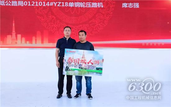 隨后,李盈杰先生在現(xiàn)場(chǎng)揭曉了三一路機(jī)功勛設(shè)備評(píng)選結(jié)果,共有來(lái)自全國(guó)各地的31位三一路機(jī)優(yōu)質(zhì)客戶獲獎(jiǎng)。特別值得一提的是,來(lái)自天津的客戶席志強(qiáng)先生更憑借購(gòu)置的三一單鋼輪壓路機(jī)在現(xiàn)場(chǎng)將特等獎(jiǎng)泰國(guó)雙人游抱回家,三一路機(jī)營(yíng)銷公司總經(jīng)理肖正文先生上臺(tái)為其頒發(fā)大獎(jiǎng)并對(duì)其長(zhǎng)期以來(lái)對(duì)于三一的支持表示感謝。
