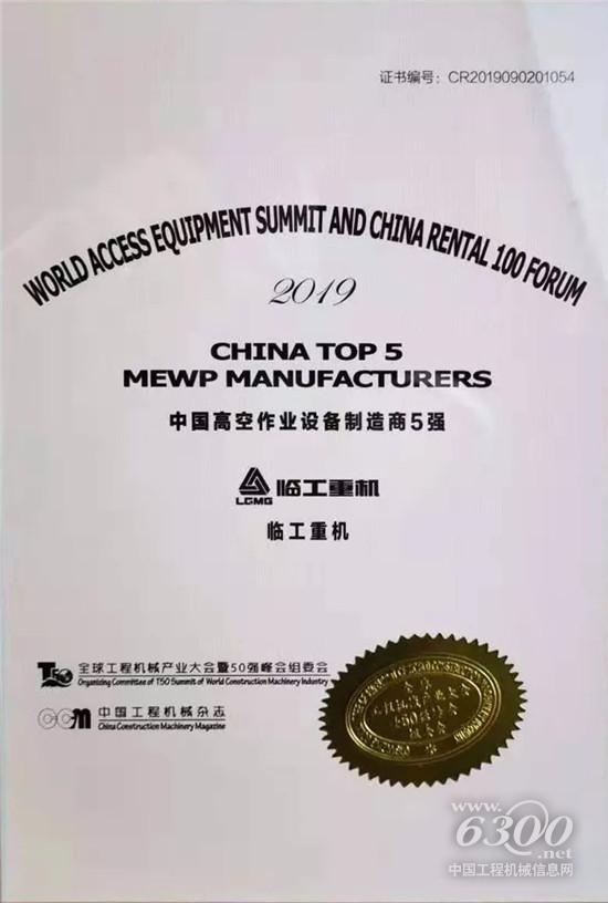 臨工重機(jī)榮獲全球工程機(jī)械制造商100強(qiáng)、高空作業(yè)設(shè)備制造商5強(qiáng)、年度高空作業(yè)設(shè)備產(chǎn)品獎等多項(xiàng)殊榮