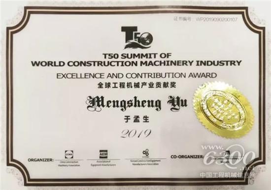 公司董事長于孟生獲得“2019全球工程機(jī)械產(chǎn)業(yè)貢獻(xiàn)獎”榮譽(yù)稱號