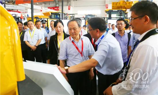 徐工集團(tuán)董事長(zhǎng)、黨委書(shū)記王民在展位前了解參展產(chǎn)品