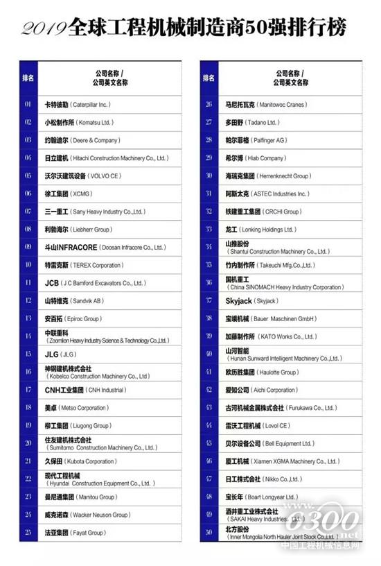 峰會由中國工程機械工業(yè)協(xié)會(CCMA)、設備制造商協(xié)會(AEM)、韓國建筑設備制造商協(xié)會(KOCEMA)主辦,發(fā)布2019全球工程機械制造商50強、2019中國工程機械產業(yè)影響力100人等10余份榜單。