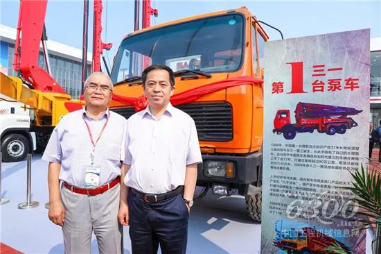 9月4日上午9點,三一重工總裁向文波步入展館。在中國第一臺自主研制的37米泵車前,他與20年前購買這臺泵車的張云峰交談甚久。