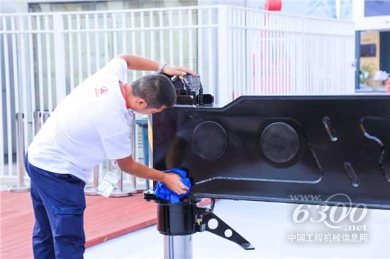 9月4日正午,三一員工在烈日下擦拭設(shè)備,只為將最好的觀展體驗帶給現(xiàn)場觀眾。