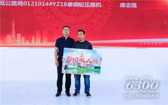 來自天津的客戶席志強先生憑借購置的三一單鋼輪壓路機在現(xiàn)場將特等獎泰國雙人游抱回家。