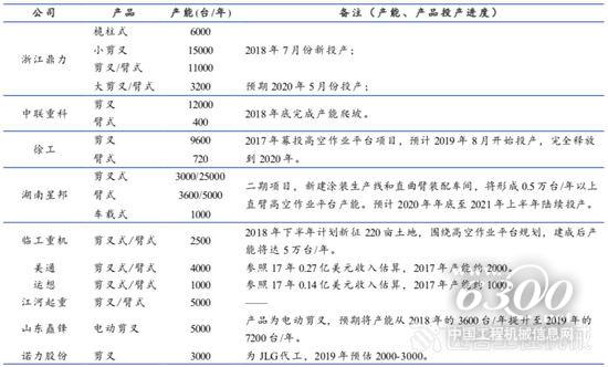 國內(nèi)主要高空作業(yè)平臺(tái)生產(chǎn)商產(chǎn)能情況
