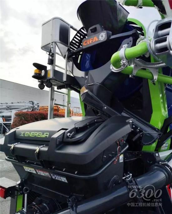 這款車所使用的動力源,與上面所說的混合動力攪拌車是一樣的。底盤部分由天然氣發(fā)動機提供動力。而上裝部分的攪拌罐、臂架、泵送系統(tǒng)等動力源,全部來自電機驅(qū)動。