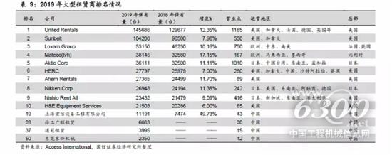 Top50租賃商中,Top10 租賃商格局基本穩(wěn)定,設(shè)備保有量占比超60%。根據(jù)《Access International》數(shù)據(jù)統(tǒng)計,租賃商行業(yè)集中度近年來穩(wěn)步提升,全球高空作業(yè)平臺租賃商前5強(qiáng)的設(shè)備保有量占前50強(qiáng)的比例從2015年的40.6%提升到2018年的47.2%,前10強(qiáng)的的設(shè)備保有量占前50強(qiáng)的比例從2015年的56.6%提升到2018年的63.1%,這一方面受益行業(yè)需求旺盛租賃商擴(kuò)產(chǎn)規(guī)模穩(wěn)健增長,另一方面也得益于海外租賃商不斷通過并購形成更大規(guī)模,比如第一大租賃商United Rentals2018年通過收購NES Rentals設(shè)備保有量近13萬臺,19年通過收購藍(lán)線租賃進(jìn)一步增至14.6萬臺。