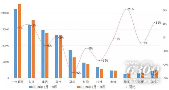 中國重汽9月份銷售重卡1.2萬輛,今年1-9月累計銷售13.84萬輛,市場份額為15.6%。陜汽集團9月份銷售重卡約1.17萬輛,今年前三季度累計銷售13.21萬輛,同比持平,市場份額為14.9%。