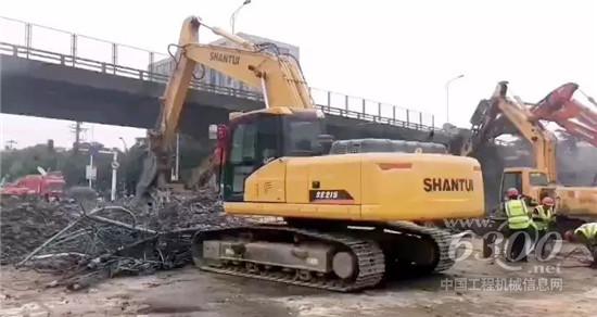 事故發(fā)生后不久,山推江蘇代理公司緊急調(diào)運數(shù)臺設(shè)備抵達(dá)事故現(xiàn)場,連夜開展救援工作,山推參與救援的SE215挖掘機(jī)為中型噸位產(chǎn)品,動力強(qiáng)勁,動作協(xié)調(diào)性好,配裝的液壓剪工作裝置,具有強(qiáng)大的剪切力,可以快速剪碎混凝土提取廢鋼筋,在拆除和回收方面性能優(yōu)越,可以大大提高救援工作效率;山推參與救援的推土機(jī)則將現(xiàn)場廢棄物進(jìn)行清理推移,最后由鏟車運離現(xiàn)場。
