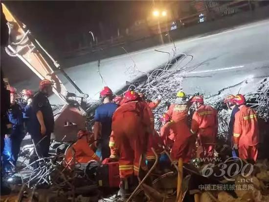 ▲今日凌晨、數(shù)臺三一挖掘機對側(cè)翻橋體破拆。