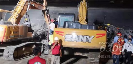 事發(fā)后,三一重工第一時間緊急調(diào)配代理商江蘇力好工程機械有限公司、昆山三輝機械設(shè)備有限公司組成10多人的應(yīng)急救援隊伍,攜帶6臺挖掘機、3臺起重機于1小時內(nèi)趕到現(xiàn)場施救。